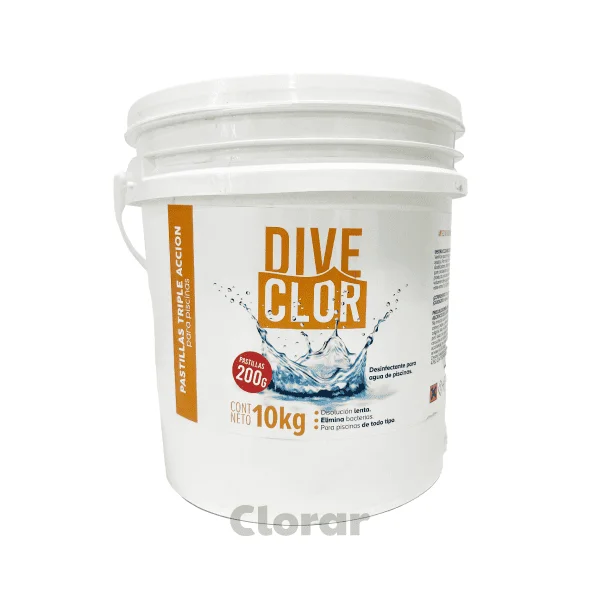 Pastillas de triple acción para piscina Dive-Clor son la forma más completa y práctica de mantener tu pileta impecable. En un solo paso, desinfectan, clarifican y previenen la formación de algas. Su fórmula de disolución lenta actúa de manera constante, ideal para quienes buscan comodidad y eficiencia sin descuidar la calidad del agua. Funcionan en todo tipo de piscinas y se aplican fácilmente con boya dosificadora.